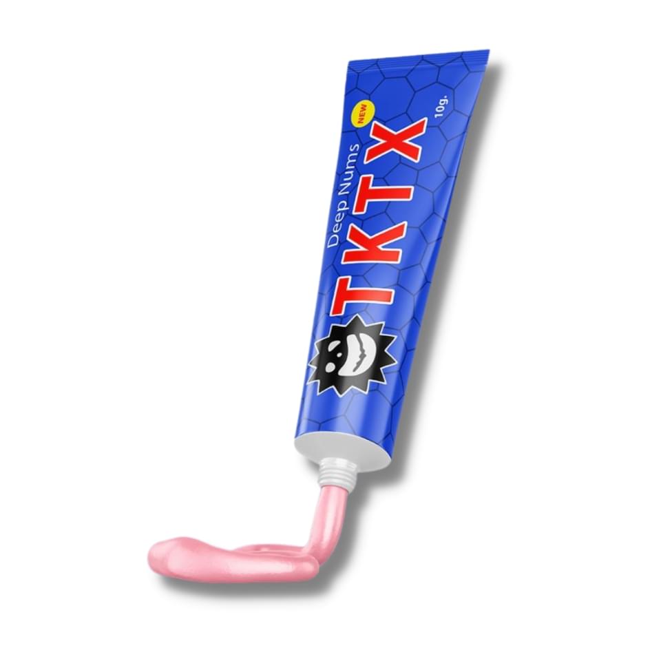 - Apply a thick amount of TKTX numbing cream to the area and rub in thoroughly.